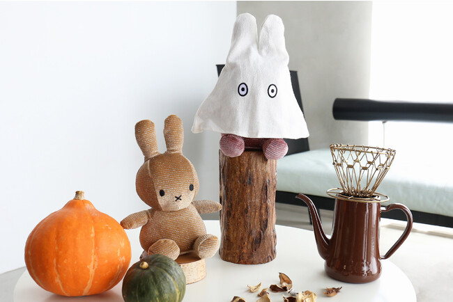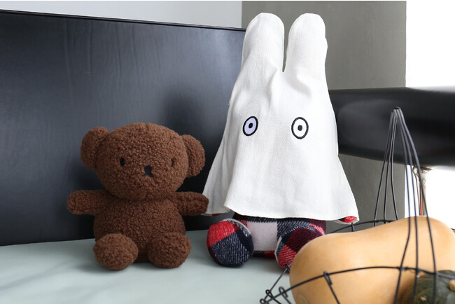 2001年に発売された絵本『Miffy the Ghost』の登場以降、大人気のシーツをかぶったミッフィー「おばけミッフィー」。BON TON TOYSのぬいぐるみのあたまから、シーツをイメージした布をすっぽりかぶせ、おばけミッフィーになった商品が再登場。まるで、絵本のなかからそのままでてきたような、すっぽりシーツをかぶったミッフィーを再現しています。