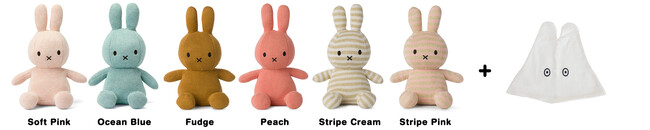 選ぶのに迷ってしまうほどカラーバリエーションが豊富な「Corduroy」シリーズや、もふもふな触りごこちに癒される「Recycle Teddy」シリーズ、繊細に編み込まれた「Organic Cotton」シリーズなど、素材や品質にもこだわったmiffyとその仲間たち。バリエーションゆたかな「miffy collection」は、今も世界中で愛され続け、これからもすばらしい未来をもつすべての子どもたちの「しあわせ」のために、特別な想いをこめて…