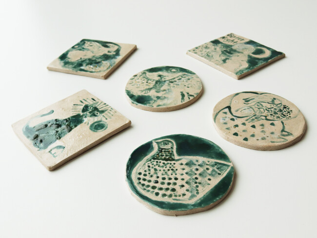 彼らの技術を活用したMANABUは、陶板に絵付と蒔絵風の技法を体験します。