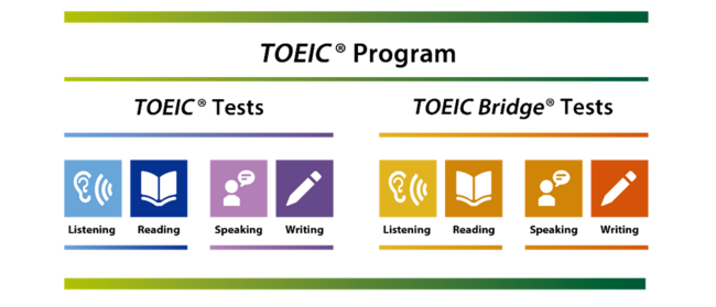 TOEIC(R) Listening & Reading Test、TOEIC(R) Speaking & Writing Tests、TOEIC Bridge(R) Listening & Reading Tests、TOEIC Bridge(R) Speaking & Writing Testsの総称。4つのテストを合わせたTOEIC(R) Programは世界160カ国、約14,000団体で実施されている。