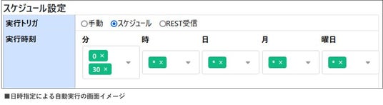 ●時刻指定に加え、Webリクエストやファイル配置による自動実行にも対応し、厳密なシステム間のデータ連携を安全かつスムーズに行えます。