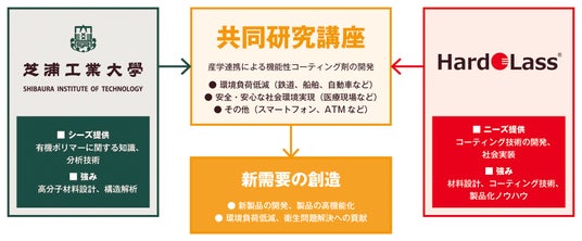 本共同研究講座では、ハドラスHDが持つガラス系コーティング技術と、芝浦工大が有する機能性有機ポリマーに関する知見を融合させ、持続可能な社会の実現に貢献できる、新たな有機‐無機ハイブリッドコーティング技術の開発を目指します。