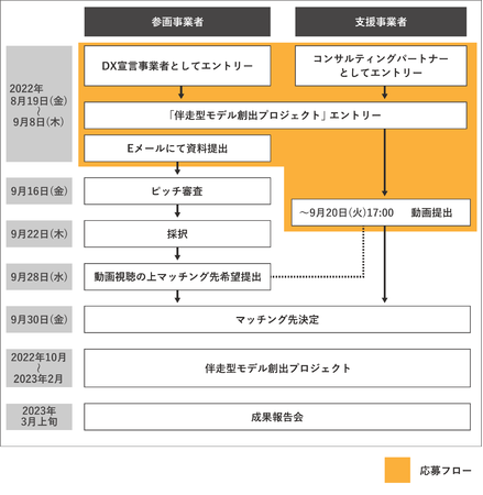 プロジェクト参画事業者とマッチングする支援事業者を選定します。