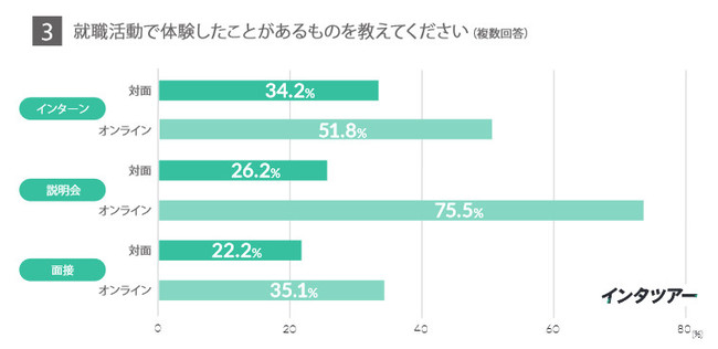 4人に3人がオンライン説明会を経験 インターンシップは対面参加も3割越え
