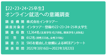 『22・23・24・25卒生対象 コロナ禍の大学生 オンライン就活への意識調査』2022年3月22日実施【株式会社インタツアー】