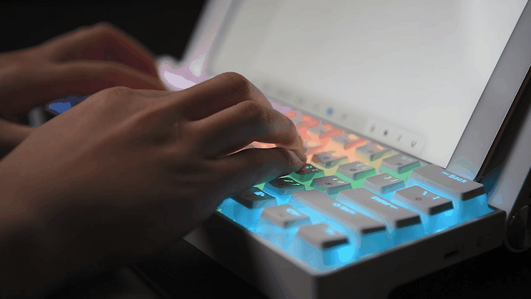 21種類のバックライトがダイナミックに変化。キートップはプリン型+半透明設計。暗い部屋での使用を楽しく盛り上げます。