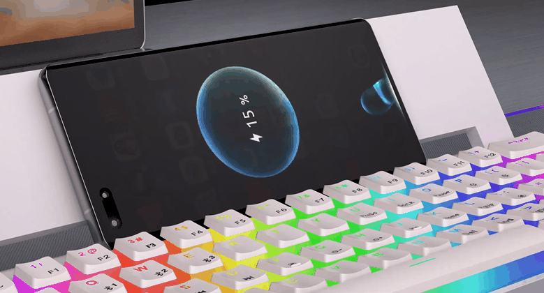 5000mAhの大容量バッテリー内蔵で、ワイヤレス接続時にも長時間使用可能。また、スマホのワイヤレス充電にも対応しています(キーボードも電源やPCへの接続不要)。