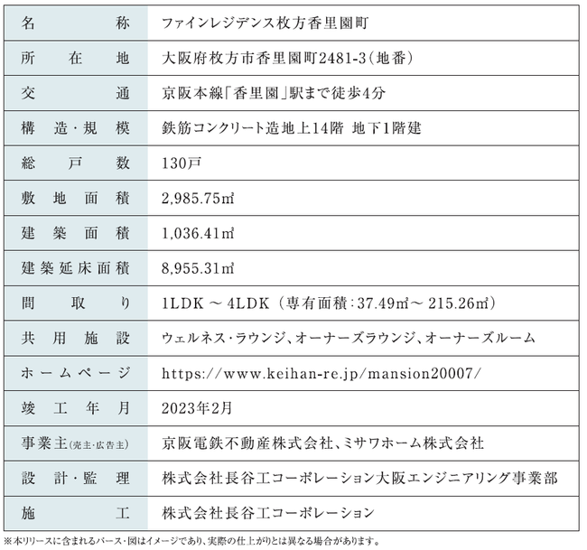 〇人生100年時代に備えたウェルネス永住邸宅「ファインレジデンス枚方香里園町」が竣工