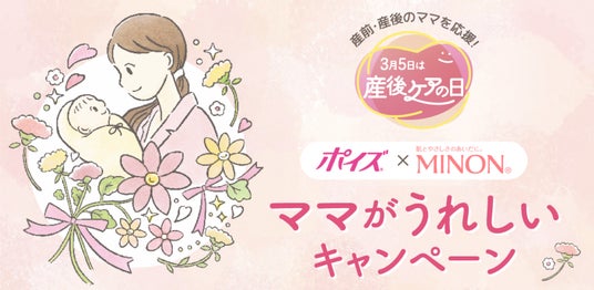 日本製紙グループの日本製紙クレシア株式会社〔本社:東京都千代田区〕は、当社が女性医師らとともに制定した3月5日の『産後ケアの日』を記念して、長年肌へのやさしさにこだわった製品づくりをしている第一三共ヘルスケア株式会社〔住所:東京都中央区〕と共に、産前・産後のママを応援する『ポイズ×ミノン ママがうれしいプレゼントキャンペーン』を2025年3月31日(月)23:59まで実施いたします。