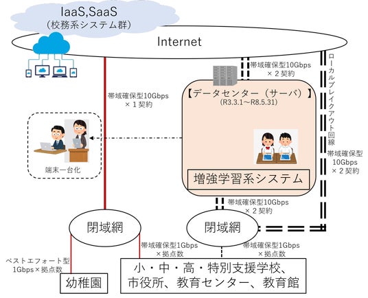 名古屋市立の学校や施設等、約420拠点を接続するネットワークとインターネットへの接続を提供し、教育情報システムを快適かつ安全に利用することができる環境を提供いたします。