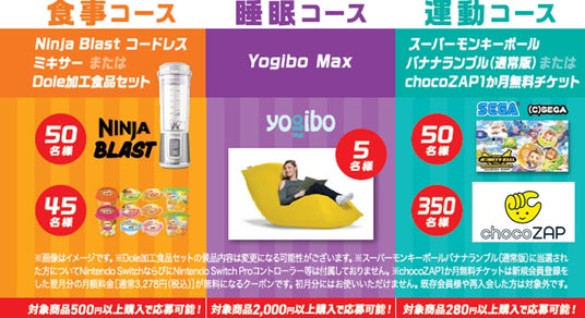 栄養・睡眠・運動をサポートする豪華賞品を、合計500名様にプレゼント