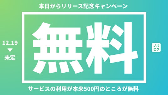 サービスの公開を記念し、通常1枚500円(予定)の生成料金を、期間限定で「完全無料」にて提供いたします。 ※本キャンペーンは予告なく終了する場合がございます。