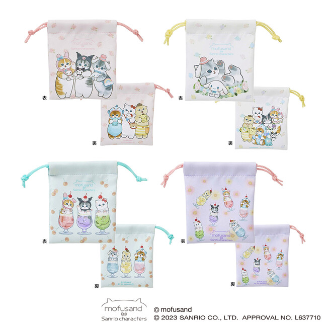 ■mofusand×サンリオキャラクターズ 汚れもふけるマイクロファイバーミニ巾着2個セット 各1,320円(税込)