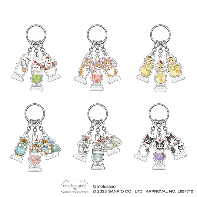 ■mofusand×サンリオキャラクターズ 3連アクリルキーホルダー(全6種) 各935円(税込)