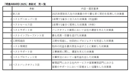 創業57年、物造りにこだわった信頼と実績の東証上場デベロッパーとして、東京23区を中心に200棟を超える“新築1棟投資用賃貸住宅”を供給している株式会社明豊エンタープライズ(本社 東京都目黒区:代表取締役 矢吹 満)を親会社とし、全6社で構成する明豊エンタープライズグループは、この度、2025年11月14日ウェスティンホテル東京にて、グループ社員の功績を称える『明豊AWARD 2025』を開催しました。