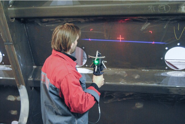AS1-XL は、LeicaレーザートラッカーAT960との組み合わせで、これまでにない超高速・超大型測定を提供します。4倍に拡張されたスキャンライン幅と、最大5倍の深さ方向測定能力で、スキャン時間を大幅に削減し、従来取れなかった箇所の測定も実現しています。さらに、ロボットやAGV等の組み合わせであらゆる自動計測も可能です。