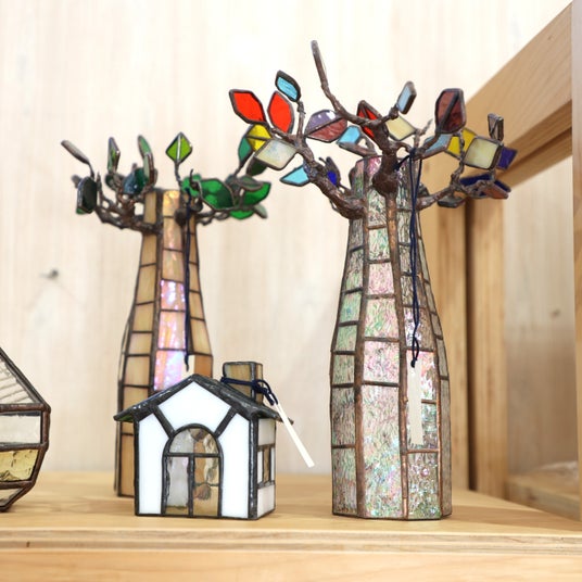 asamidステンドグラス作家。花瓶・ガラスホルダー・ランプシェードなど様々なアイテムを作っています。 キャンドルや光との相性が良いステンドグラスの 個性的なアイテムが揃います。