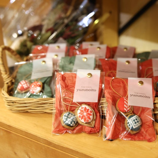 yuzunoito青森県津軽地方の伝統工芸「こぎん刺し」の手法を取り入れながら現代風にアレンジし雑貨を製作しています。麻の布目を数えながらひと針ずつ糸を通し、模様を作っていきます。