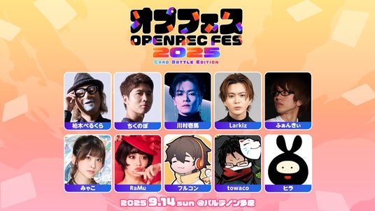 株式会社OPENREC(東京都渋谷区、代表取締役:兵頭陽)は、2025年9月14日(日)、東京都多摩市の「パルテノン多摩 大ホール」にて、大人気ゲーム実況者たちが集結するイベント『オプフェス2025 ~カードバトル編~』を開催いたします。豪華出演者たちの迫力バトルにご期待ください。