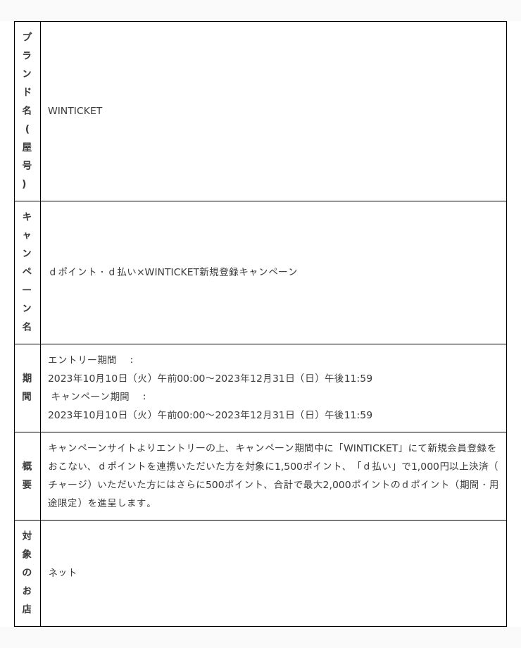 ~「dポイント・d払い×WINTICKET新規登録キャンペーン」を開催~
