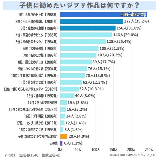 今回はエンタメ分野に興味関心のある方503名を対象にしたアンケート調査の結果を発表してまいりました。皆さんのおすすめジブリアニメは何ですか?