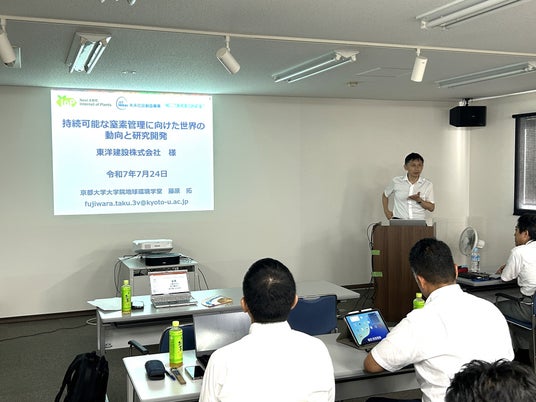 2025年7月24日、京都大学大学院 地球環境学堂 地球益学廊 藤原 拓 教授をお招きし、「持続可能な窒素管理に向けた世界の動向と研究開発」をテーマにした「東洋建設トークサロンwith京都大学」を総合技術研究所(鳴尾研究所)およびwebで開催しました。