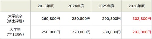 また、中長期的な企業価値向上につながる人材基盤の強化を目的として、2026年4月入社社員より前年比12,000円引き上げます。