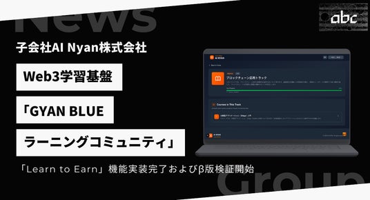 abc株式会社(本社:東京都港区、代表取締役:松田 元、証券コード:8783、以下「当社」)は、当社子会社AI Nyan株式会社(以下「AI Nyan社」)を通じて展開する「GYAN BLUE(ギャンブルー)ラーニングコミュニティ」(以下「本コミュニティ」)について、このたび中核機能である「Learn to Earn(学んで稼ぐ)」システムの実装を完了し、β版による機能検証を開始いたしましたので、お知らせいたします。