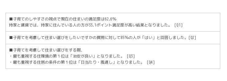 ~ 子育てのしやすさの視点で現在の住まいの満足度は62.6%~