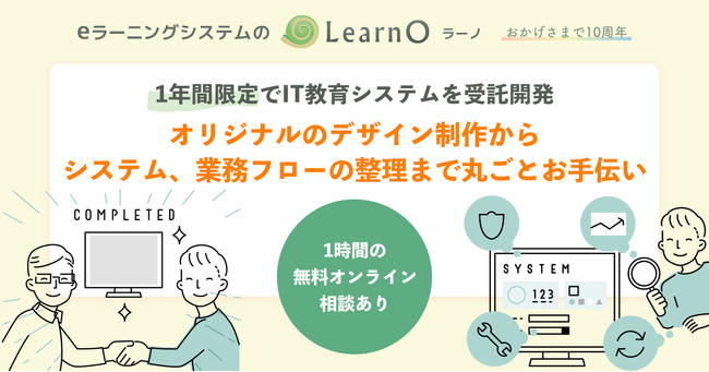 Mogic株式会社(本社:東京都練馬区、代表取締役社長:山根 陽一)が展開し、法人700社、35万人以上が利用するeラーニングシステム「LearnO(ラーノ)」は、サービス開始から10年目の節目にこれまで蓄積してきたオンライン教育のノウハウを注ぎ込んで、クライアントのご要望に応じたIT教育システムを一から構築いたします。