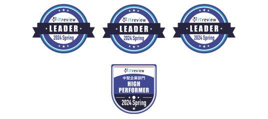 ユーソナー株式会社(本社:東京都新宿区、代表取締役会長:福富七海、代表取締役共同社長:長竹克仁・大谷栄一、以下当社)は、国内最大級のクラウドサービスレビューサイト「ITreview Grid Award 2024 Spring」において、当社のサービスが4部門で「Leader」を受賞しましたのでお知らせします(4部門でLeader、2部門でHigh Performer)。さらに、長期にわたり製品を改善し、ユーザーから評価され続けた製品の証として、「3年連続Leader」のバッジも授与されました。当社が提供する各クラウドアプリケーションの価値について、多くのお客様から高い評価をいただきました。