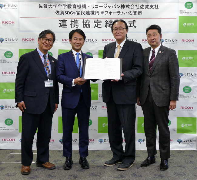 リコージャパン株式会社 佐賀支社(支社長:西崎 圭司)は、4月4日に佐賀大学全学教育機構(機構長:岩本 諭)、佐賀市(市長:坂井 英隆)、佐賀SDGs官民連携円卓フォーラム(座長:黒岩 春地)と連携協定を締結しました。リコーグループが自治体や教育機関などと連携協定を締結したのは、あわせて51件となります。