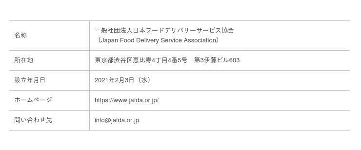 私たちのライフスタイルはコロナ禍によって大きな変化が起こっており、リモートワークやオンライン飲み会と言ったニューノーマルな生活様式の普及など、日本でもフードデリバリーは本格的に日常化に向かい始めております。ただ、急速に業界が成長していく一方で、新たな業界課題が顕在化しており、フードデリバリーがさらに定着していくためには、利用者・飲食店に安心してご利用いただく環境作りが不可欠であります。本団体を通じて、各事業者間の垣根を越えて、業界全体の健全な発展に取り組んでまいります。