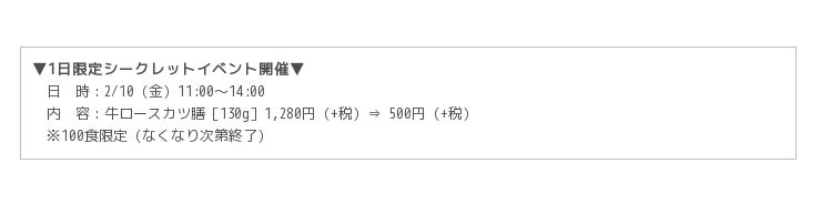 【1日限定】2/10(金)は、話題の牛カツが500円で食べられる行列必至のプレイベントを開催!