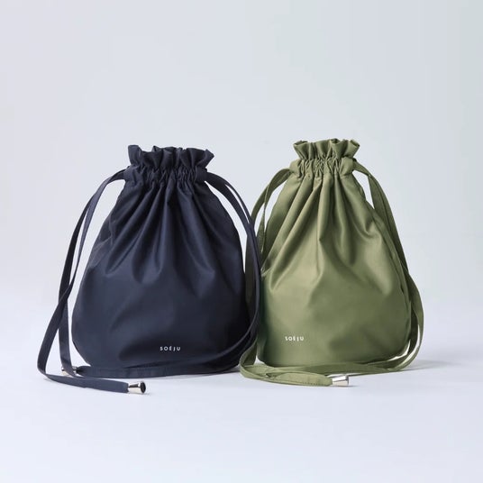 ブランド創立時から販売している、ソージュの定番・リモンタシリーズのエッセンスを感じていただけるオリジナル巾着。LIMONTA eastの再生素材を使用しています。「SOEJU」ロゴ入りです。NAVYかKHAKIのどちらかが、抽選で600名様に当たります。