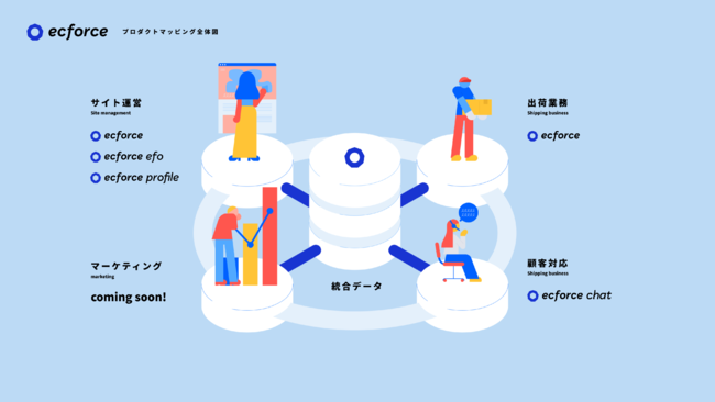 そして本年6月には、資金調達を行うと同時に「次世代EC構想」(※2)を発表し、その実現を目指してこれまで以上にEC/D2Cメーカーに寄り添ったプロダクト開発を行ってまいりました。このような中、シームレスなデータ連携でマーケティングからバックヤードオペレーションまで全体最適な運用を実現できるECプラットフォームとして、ワンプロダクトだからこそ実現できる「ecforce」の世界観を発信すべく、ecforceの各種プロダクト・サービス名称を統一しリニューアルする運びとなりました。EC/D2Cを運営する上で課題に直面した際、ワンストップのサービスとしてecforceのサービス群を想起いただくこと、そして課題解決に最適なecforceのプロダクトを特定しやすい状態を目指し、EC/D2Cメーカーのecforceを活用した事業成長に貢献してまいります。