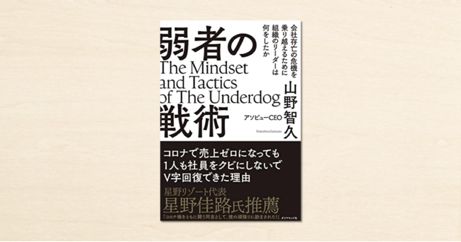 メディアプラットフォームnoteで、アソビュー株式会社代表取締役CEOの山野智久さんが投稿した記事「コロナ直撃のベンチャー経営者は、緊急事態に何を考え、そして実行したのか。」などをまとめた書籍『弱者の戦術 会社存亡の危機を乗り越えるために組織のリーダーは何をしたか』が、ダイヤモンド社から2021年12月1日(水)に発売されました。山野さんは、コロナ禍が直撃し一時は売り上げゼロを記録しながらも、見事会社の立て直しに成功するまでのプロセスをnoteで発信したことで話題に。本書には、企業として、ひととして「ダメになりそうな時にどうすれば良いのか」という知見やスタンスが綴られています。