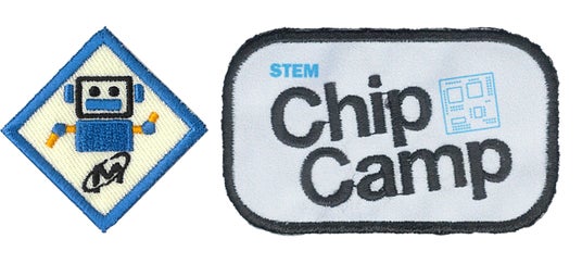 左:ロボティクスバッジ 右:Chip Campバッジ