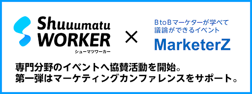 株式会社シューマツワーカーでは、マーケターが主体となって企画、登壇を行う、マーケータのためのイベント「MarketerZ」にサポーターとして協賛します。