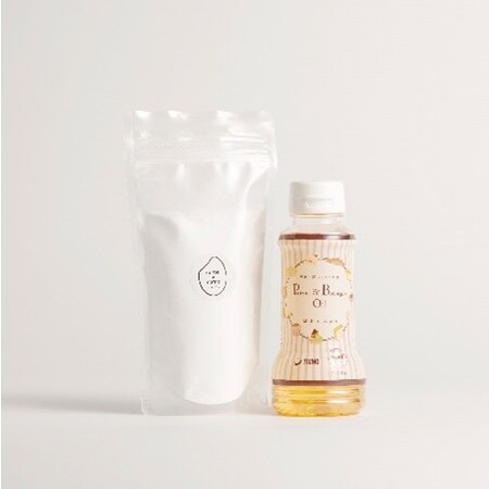 商品内容:製菓製パン用こめ油「P&Bオイル180g」×1本、国産米粉150g×1袋
