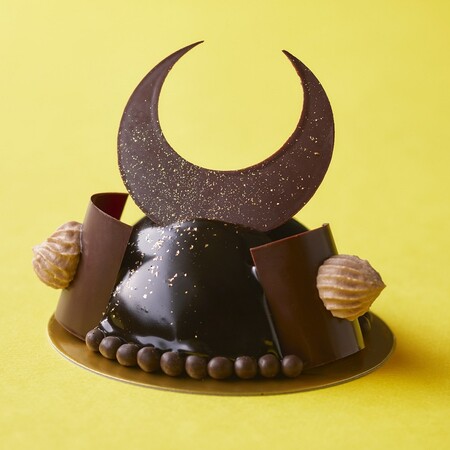 本来、兜は武士にとって身を守るための道具。これらを飾ることは病気や事故などの災いから守り、丈夫に育ってほしいという願いが込められています。そこでホテルニューオータニ博多でも、お子様が健やかに成長してほしいという願いを込めて「かぶとケーキ」をご用意します。ヘーゼルナッツのダックワーズの上に、ミルクチョコレートとふんわりとしたチョコレートムースを重ねチョコレートでコーティング。特製の板チョコや金箔で仕上げ華やかさも演出しました。