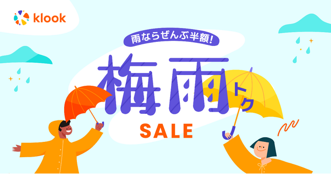 世界をリードする旅行・レジャー予約サイトのKlookは、6月5日から6月30日までの間、「梅雨トクSALE」を開催します。月間4,000万人の訪問者数を抱えるKlookのプラットフォーム上では、53万点以上にのぼる世界中の観光施設チケットやツアー、公共交通チケット、Wi-Fi/SIM、レンタカーなど、旅行・レジャーに必要なあらゆるものがお得に簡単に予約できます。今回、梅雨時のお出かけを応援するため、期間中、国内の対象屋内施設・アクティビティが5%OFFとなるクーポンを配布します。さらに、6月12日から5日間連続で、その日の東京で雨が降ったら世界中のKlookの商品全てに使える半額クーポンを、同日21時に配布するフラッシュセールを開催します。
