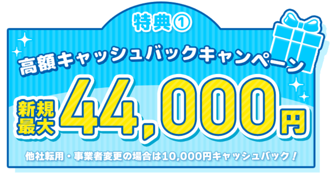 最大44,000円キャッシュバック or 最大38,000円キャッシュバック+工事費無料、の2種類から選択可能!