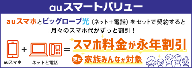 ※auスマートバリューの適用には「ビッグローブ光電話」(月額550円)のご契約が必要です。