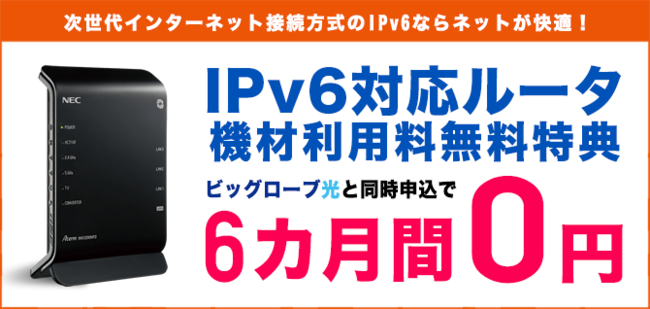 ◆IPv6対応の無線LANルーターのレンタル料が6ヶ月間無料