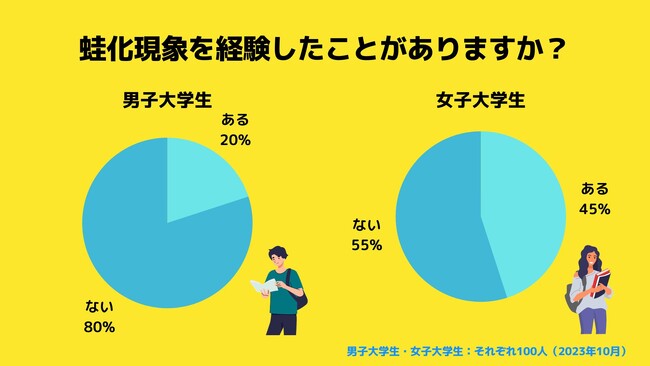 ■蛙化現象を経験したことのある男子大学生は20%、女子大学生は45%
