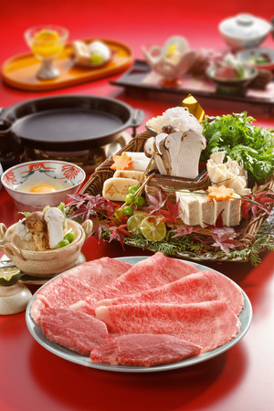 明治28年創業の老舗「すき焼 人形町今半」の「松茸すき焼コース」は、松茸と黒毛和牛のロースとヒレがどちらも楽しめる、食欲の秋ならではのぜいたくなコースで特別なお食事に最適です。