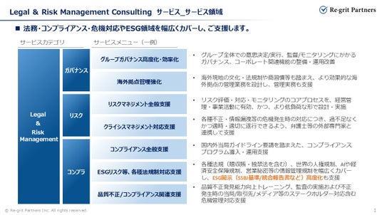 法務・コンプライアンス・危機対応やESGの知見に加え、戦略立案・業務改革の実践的経験を活かし、平時から有事対応まで、適宜、弁護士等の専門家とも連携し、実効性の高いソリューションを提供いたします。