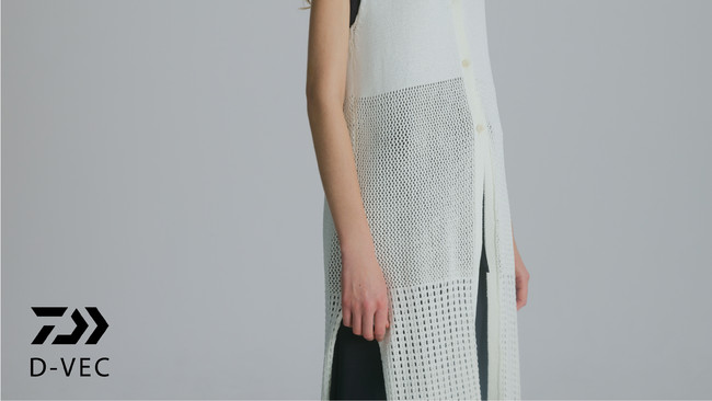 今回発売するベスト・ロングジレともに、特殊な撥水加工糸をよりソフトで膨らみのあるリリヤーン糸に仕上げてから編み立てた、ブランド独自の編地「ウォーター リペレント リリヤーン」を採用。撥水性・速乾性に優れており、春夏シーズンも快適に着用いただけます。作り手が素材の特性を熟知し工夫を施したからこそ完成した、ナチュラルな風合いと高い機能性を両立させたD-VECならではのアイテムです。