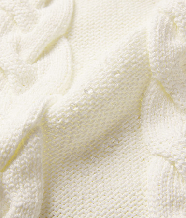 バックヘムがやや長めにデザインされたベスト。同じ編地のベルトで自在にウエストマークが可能です。